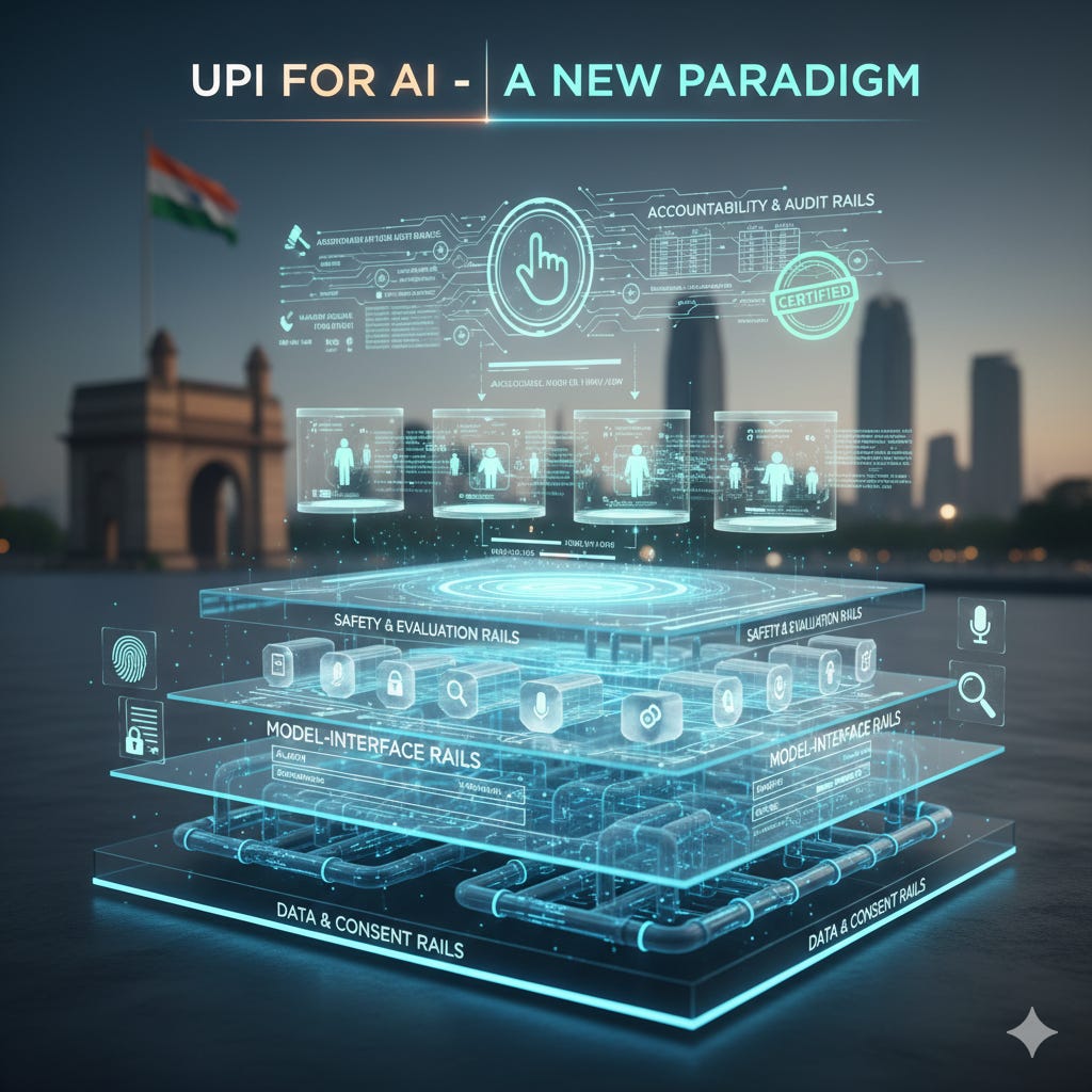 This is why slogans like “UPI for AI” can be misleading. We don’t need a single AI platform. We need AI rails in a narrower, more technical sense: common protocols and governance at the boundaries, not uniformity inside the models.